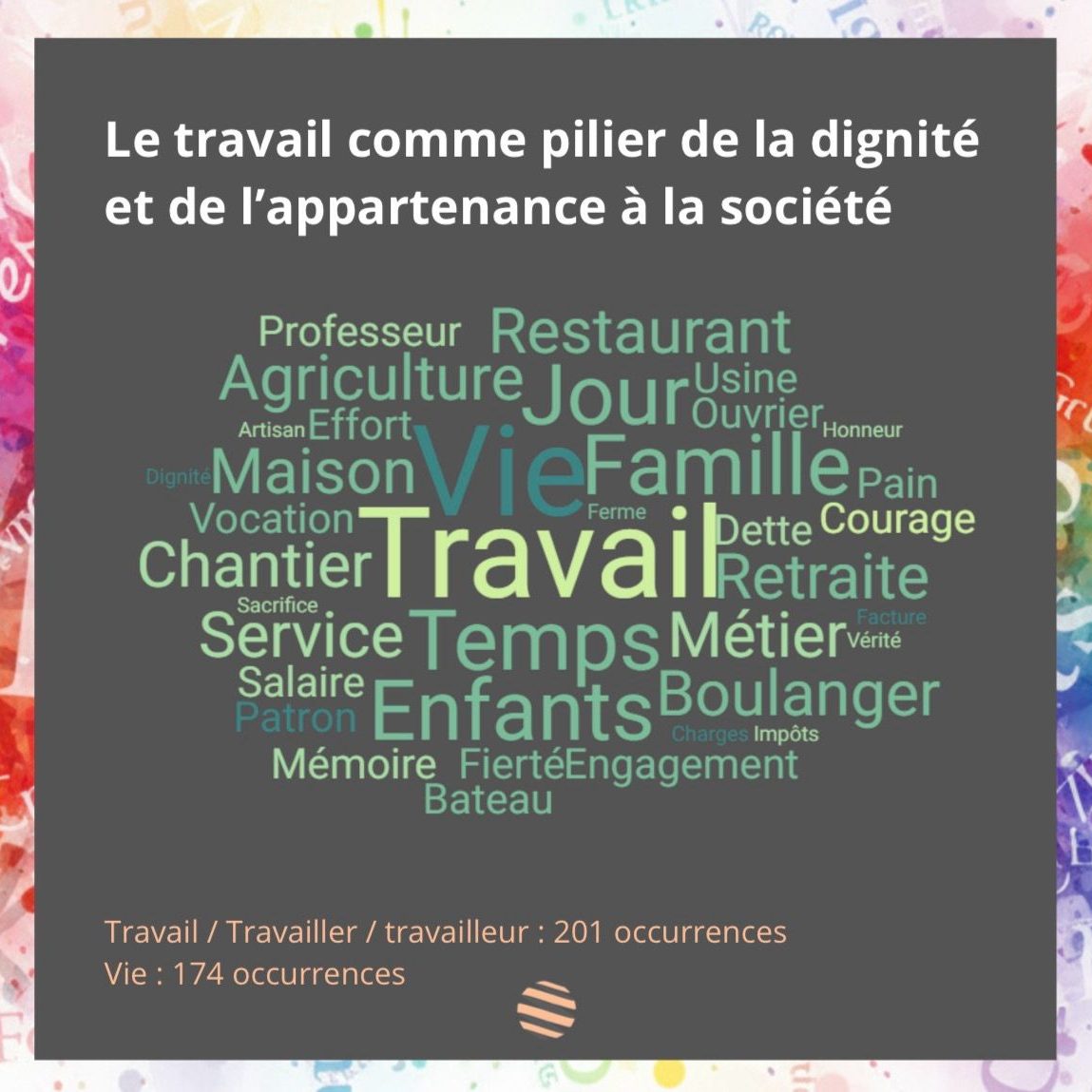 Le corpus fait apparaître une structuration nette autour du champ du travail. Les occurrences liées au métier, à l’effort, aux ouvriers, aux artisans, à la retraite et aux territoires ne relèvent pas d’un simple registre socio-économique : elles organisent la hiérarchie du récit.