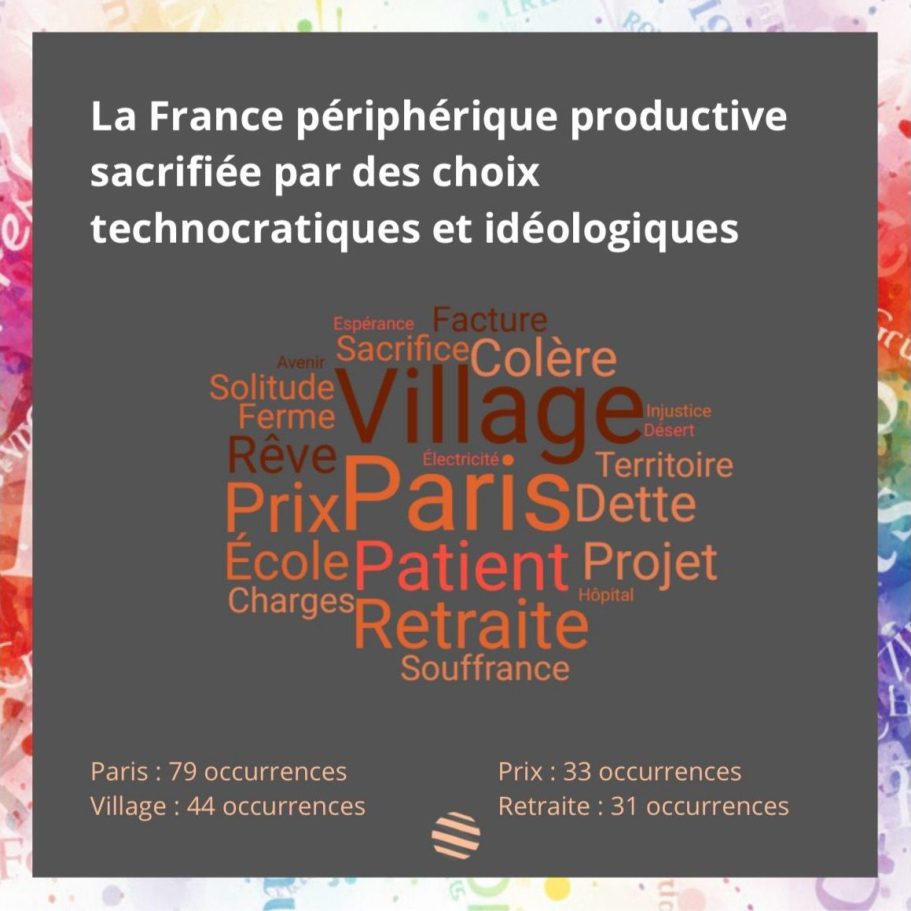 Ce registre est constamment articulé à une fracture territoriale. L’opposition centre / périphérie, Paris / territoires, ne décrit pas seulement une géographie : elle construit une dissymétrie de reconnaissance. D’un côté, une France productive, située, inscrite dans l’expérience du réel ; de l’autre, une élite administrative et technocratique perçue comme détachée de cette matérialité sociale.